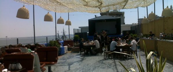Como é bom sair do trabalho e ir espairecer, apanhar sol e ar. Ontem fui com o Jeitoso ao Clube Ferroviário de Lisboa. Imaginem o cenário: final de tarde, pôr-do-sol, terraço/esplanada no cimo do prédio com vista para o rio Tejo, com a estação de comboios de Santa Apolónia logo ali por baixo, que também tem uma certa piada, música de fundo (a decorrer ensaio de concerto da noite). Este é mesmo um antigo clube dos trabalhadores ferroviários, agora remodelado, embora com o mesmo ambiente: troféus do clube, vitrinas com objectos antigos, mobiliário antigo…mas de referir principalmente que os bancos da esplanada são de velhos comboios. Quando chegámos ainda estava pouca gente mas quando saímos, cerca das 19.30 já estava cheio de pessoal que vai ali acabar o final do dia (o clube também é bar/disco e fica aberto até altas horas, também costuma ter muitos concertos).